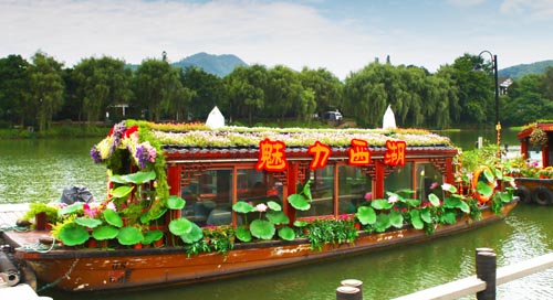 图为“魅力西湖”荷花船