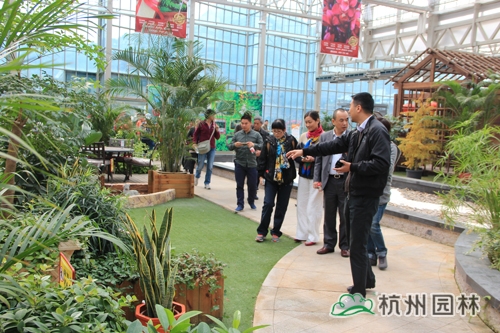第二天,考察团在米兰手机在线官网总裁张炎良、副总裁丁旭升的陪同下参观了画境·青山湖花园中心。该花园中心是一个集园艺产品研发、展示和推广的现代园林高新技术平台,致力于打造庭院设计、咨询、建造、养护等各类功能综合的一站式园艺服务中心。项目有近3000亩配套生产基地,12000平米研发与生产温室,以及室内情景展示区、园艺展示区,室外陈列展示区、应用展示区等多个功能区块。其中,用于室内园艺展示的4000平方米的展览温室,引进荷兰PRINS温室技术,实现对温度、光照等全智能控制,是一个技术含量极高的节能、环保型现代温室。