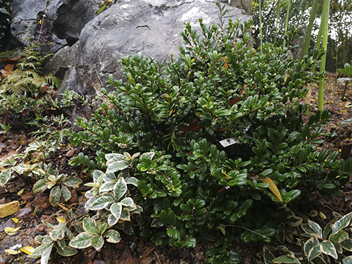 为日本引进品种,常绿地被灌木,植株低矮,带有奶白色花边,适合用于寄植和阴生花园营造,在半阴通风湿润不积水的户外环境栽培比较合适,阳台盆栽皆可。