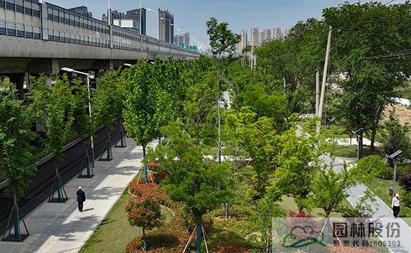 项目建设以生态理论为指导,贯彻可持续发展战略,依据所处位置、周边环境条件进行景观营造,在现有绿地基础上有机融入口袋公园,链接场地周边公园带,形成城东带状公园,塑造具有地域性、文化性、参与性的绿色城市公共活动空间,使生态功能与景观功能密切结合,让有限的绿地生态效能得到充分释放。